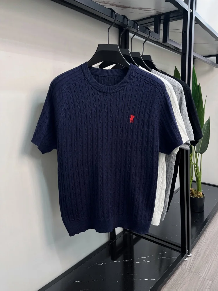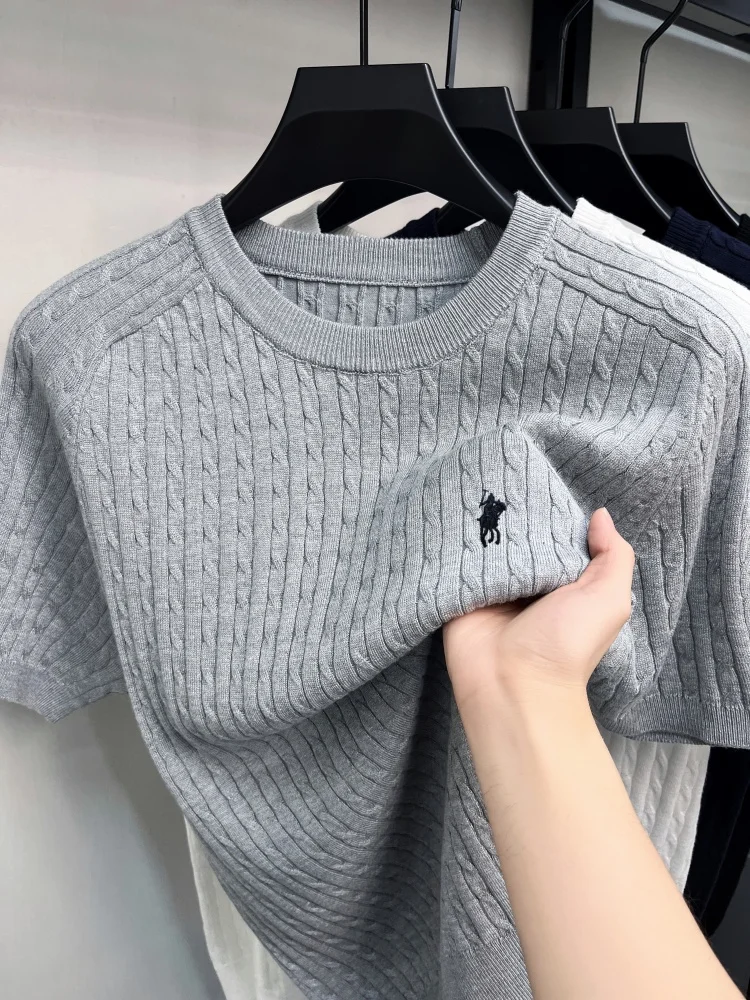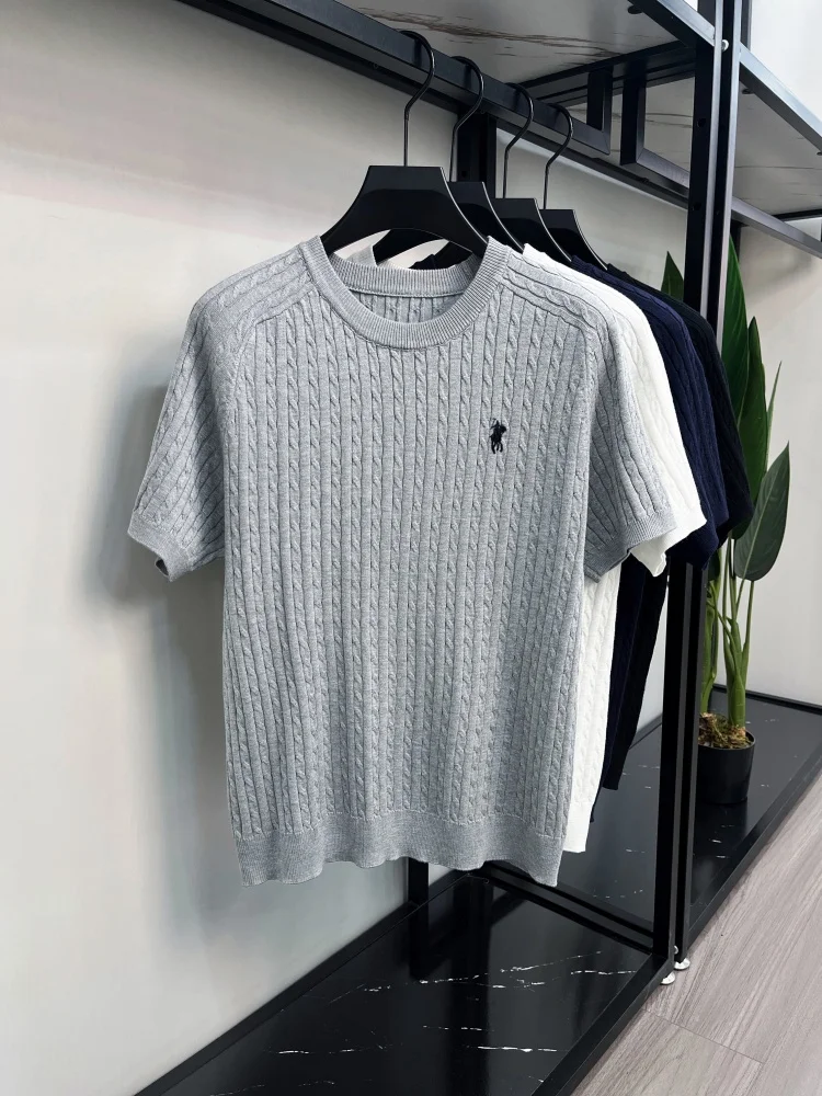 High end luxury brand short sleeve knitted T-shirt Korean casual comfort men's summer new Paul Pony embroidered round neck top