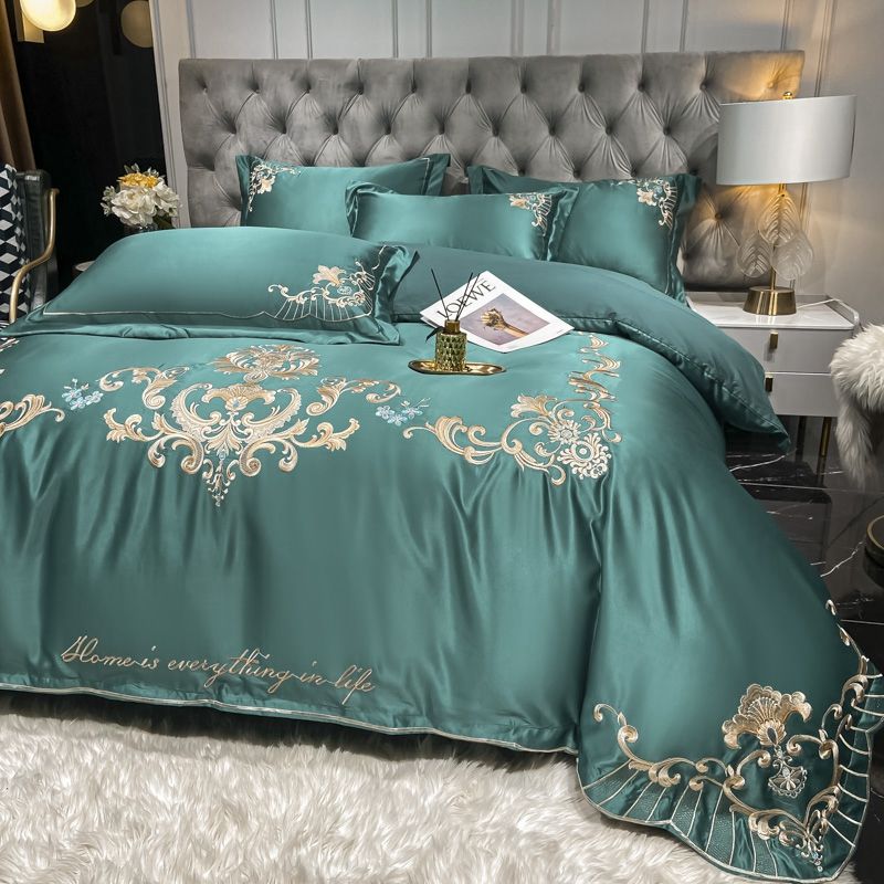 High End Luxury European Satin Wedding Four Piece Set Blue 1.8fitted sheet 200x240