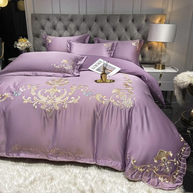 High End Luxury European Satin Wedding Four Piece Set Grey 1.8fitted sheet 200x230