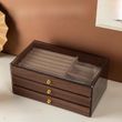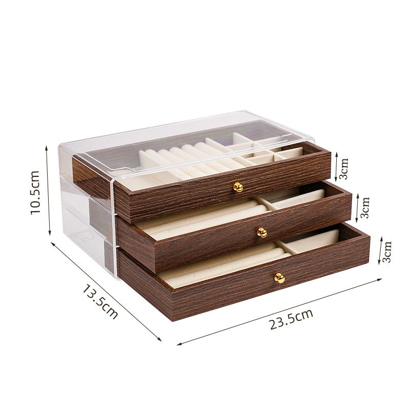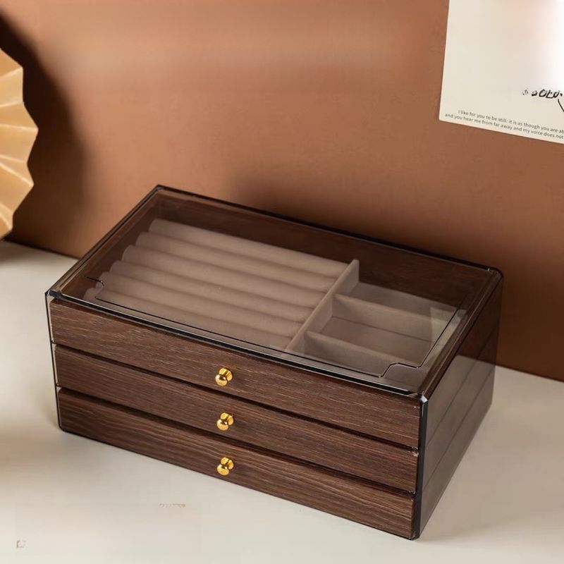 The jewelry box features a luxurious walnut wood grain pattern, adding a touch of elegance and sophistication to your personal belongings.