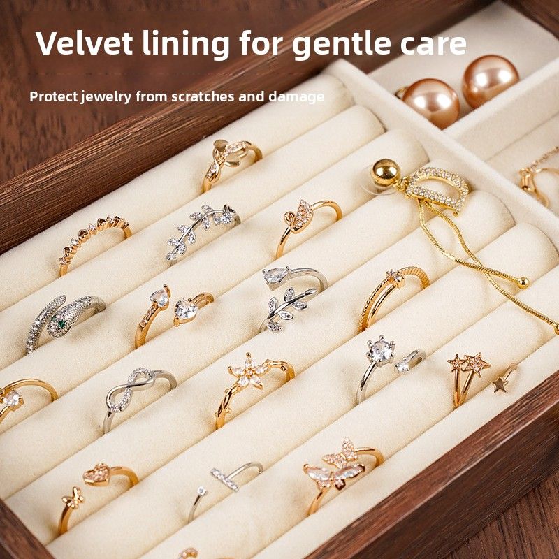 Constructed from durable plastic and lined with walnut wood velvet, this jewelry box ensures your valuables are well-protected and secure.