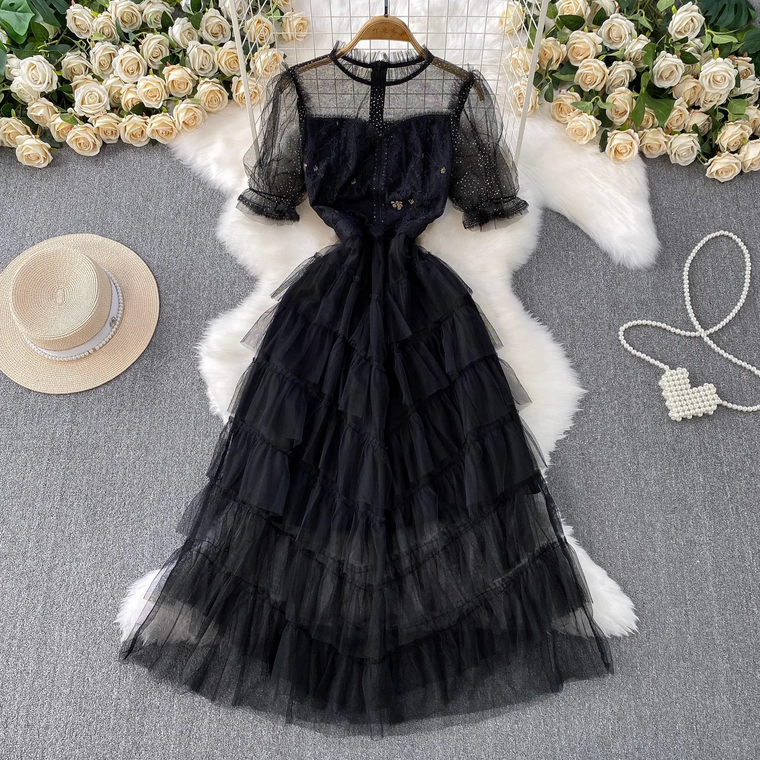 L:Bust:92cm,Waist:75cm,Length:118cm,Shoulder:36cm,Sleeve:27cm