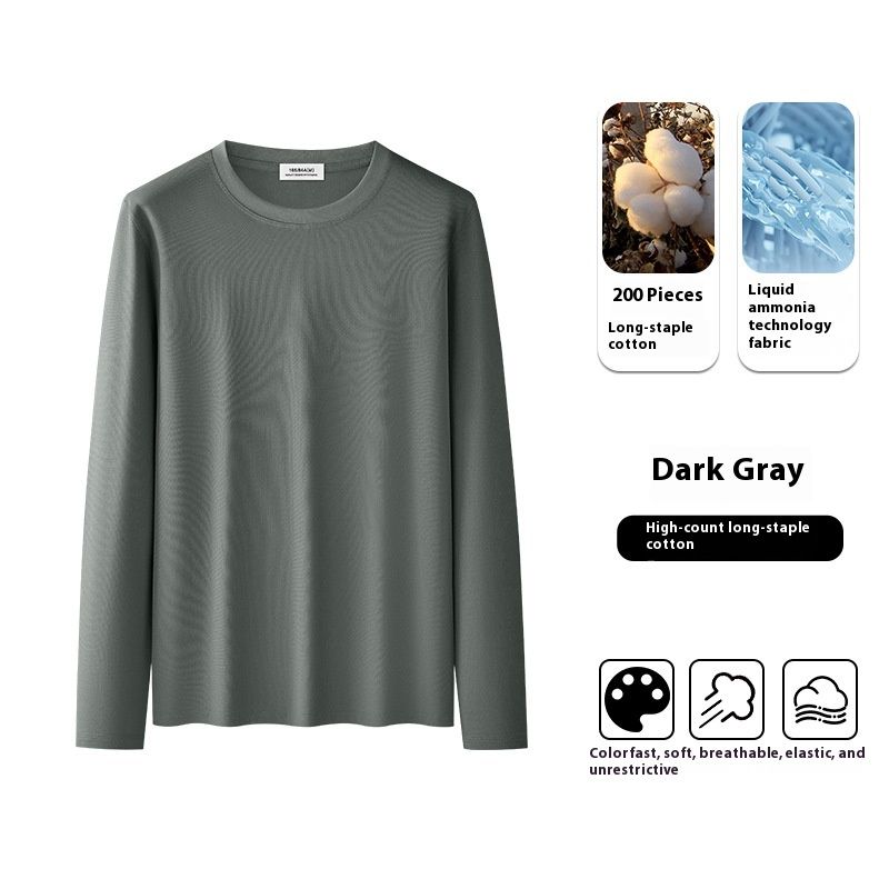 High-end Simple Men's Long-sleeved T-shirt Khaki Green 2XL