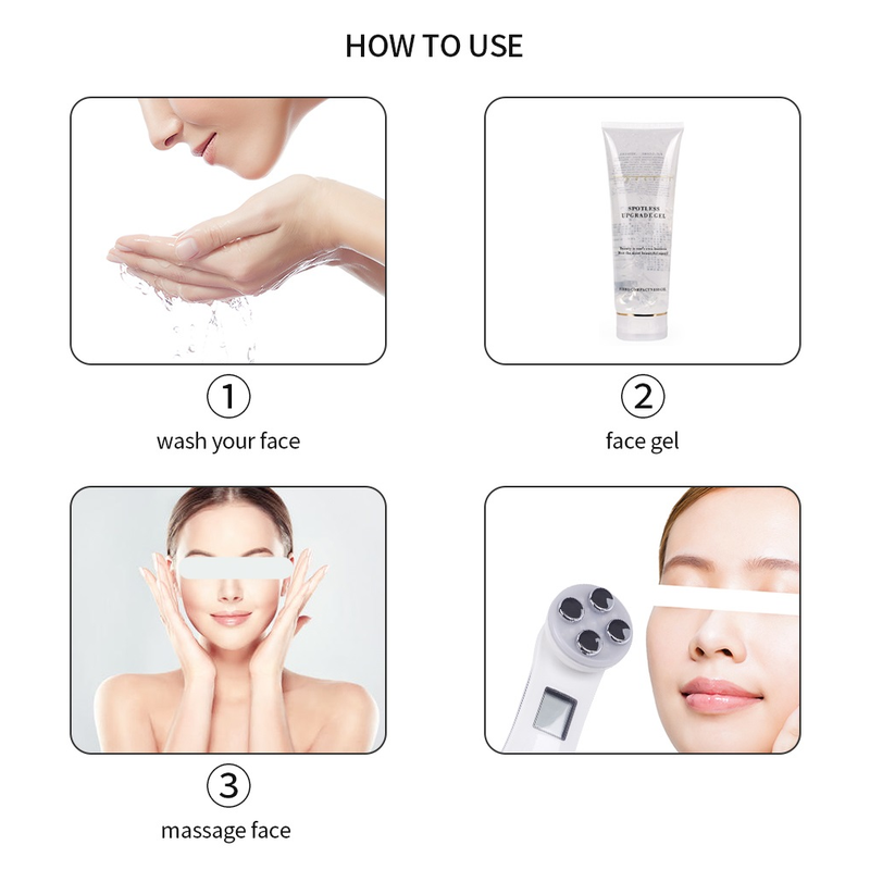 *High-frequency current: high-frequency electrical resistance heating, effective at improving sagging skin,aging wrinkles, promote lymphatic and blood circulation and other care. (Tip: high-frequency energy is not strong, some people may not feel the heat.)