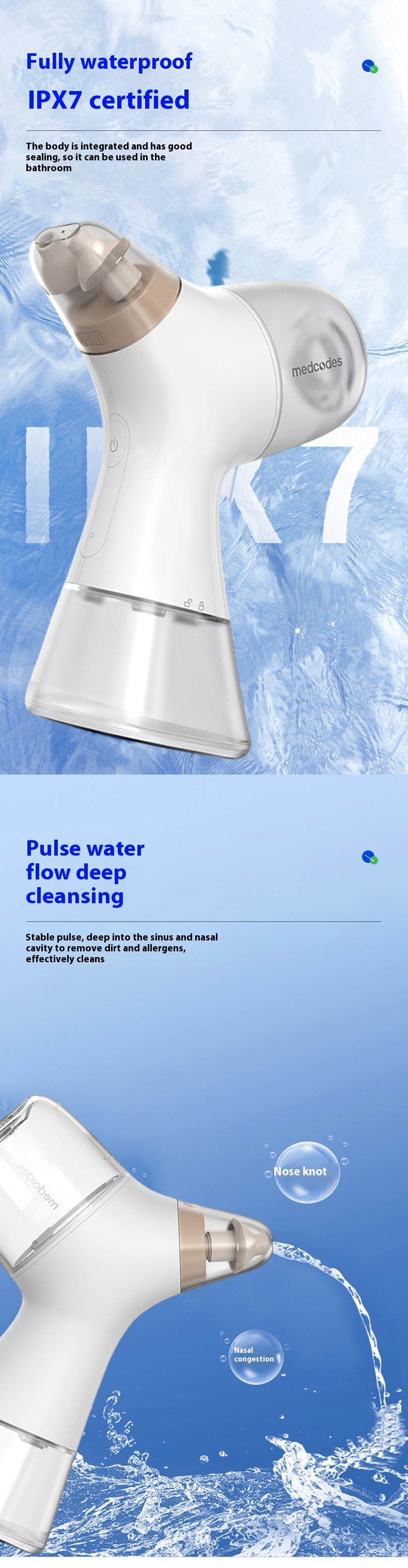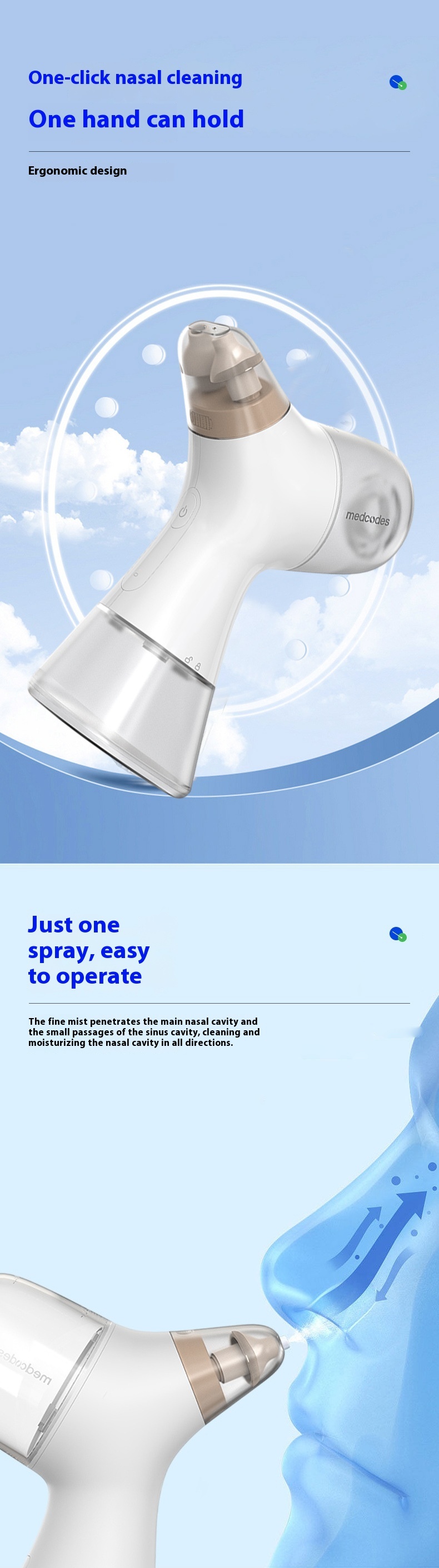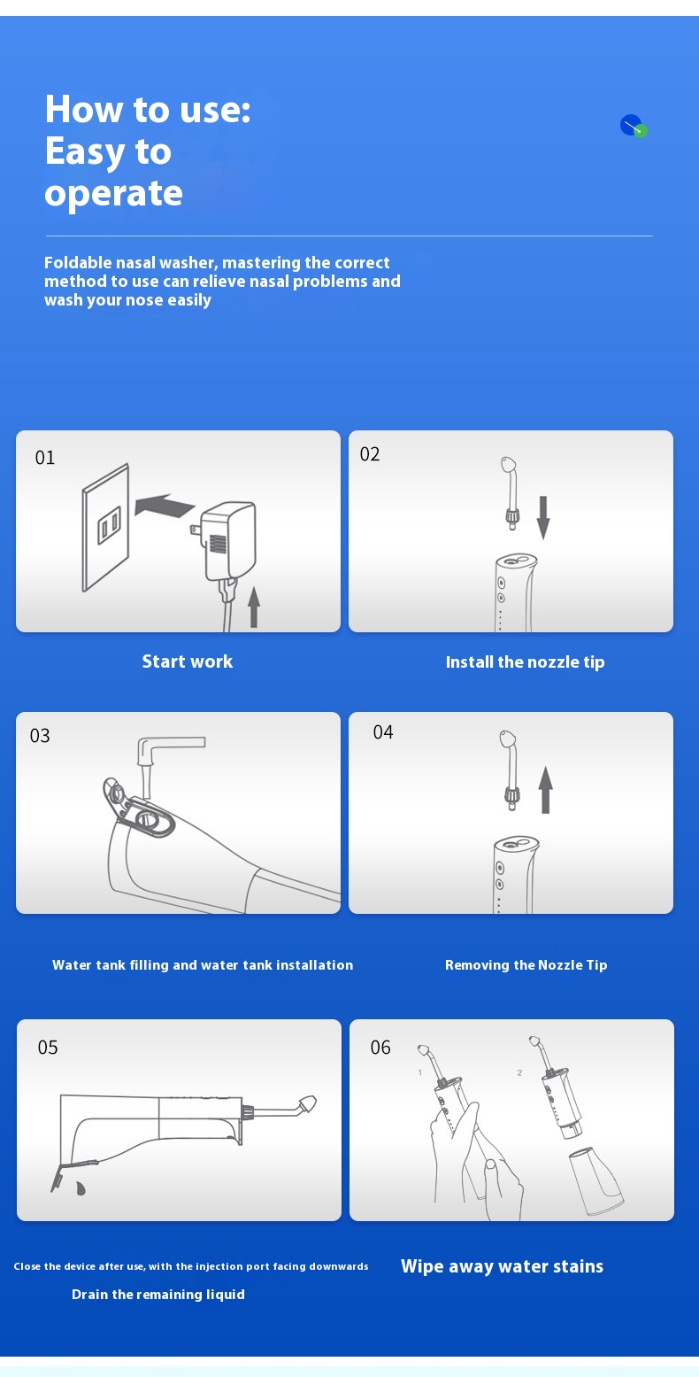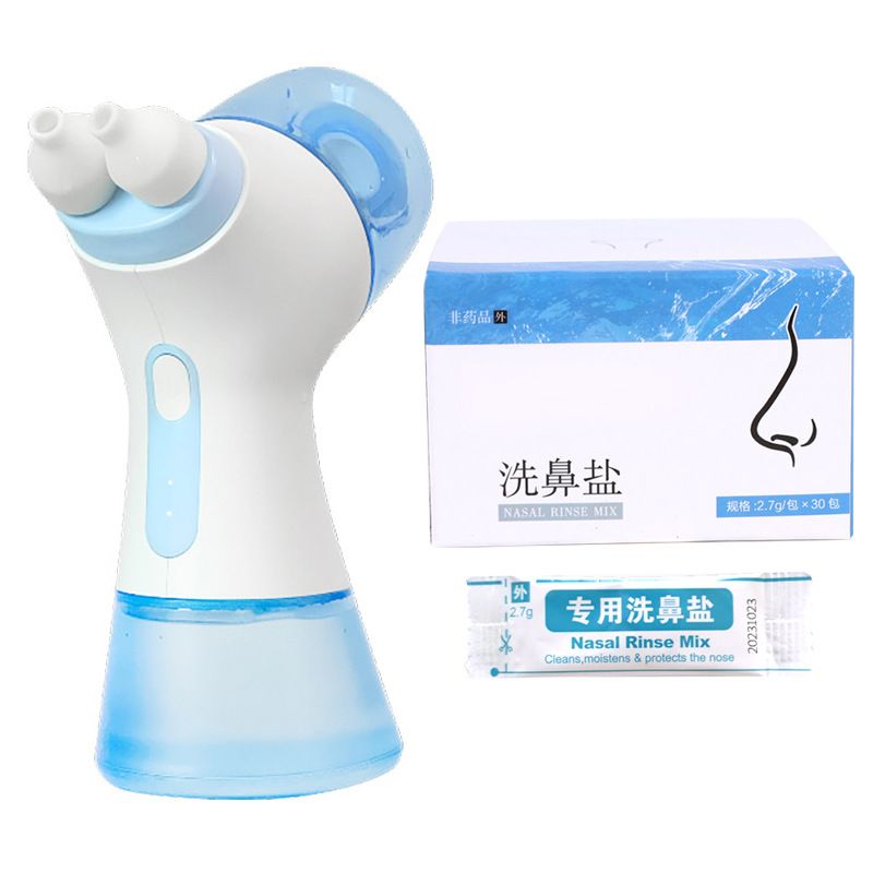 Specifications: White nasal cavity flusher standard 1 box salt packet, blue nasal cavity flusher standard 1 box salt packet, white nasal cavity flusher nasal cavity liquid antibacterial, blue nasal cavity flusher nasal cavity liquid antibacterial, nasal channel liquid antibacterial agent (10ml × 7 bags/box), salt packet (30 PCs/box)