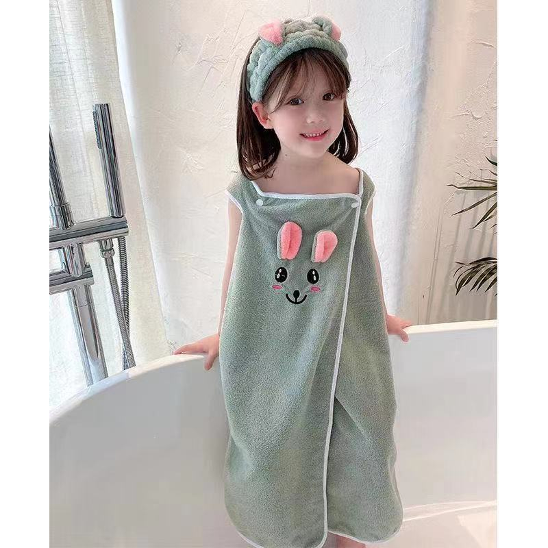 High Grade Children's Bath Towel Bath Skirt Hair Band Suitable for Wear By Older Children In Bathrobes 3-15 Years Old Absorbent