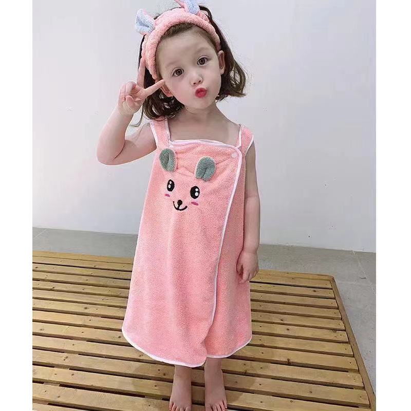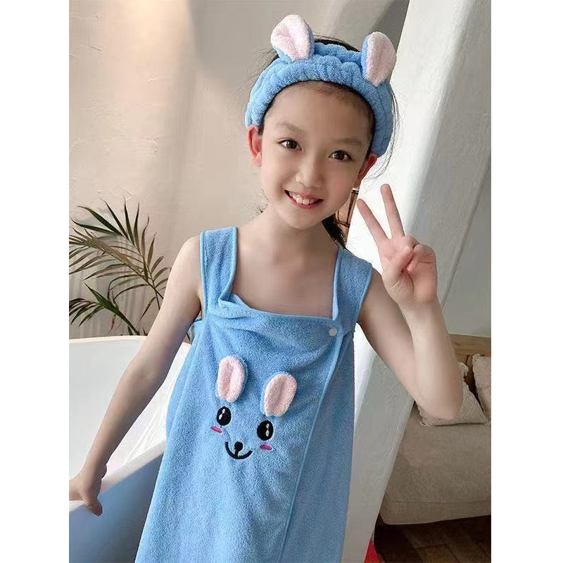 High Grade Children's Bath Towel Bath Skirt Hair Band Suitable for Wear By Older Children In Bathrobes 3-15 Years Old Absorbent