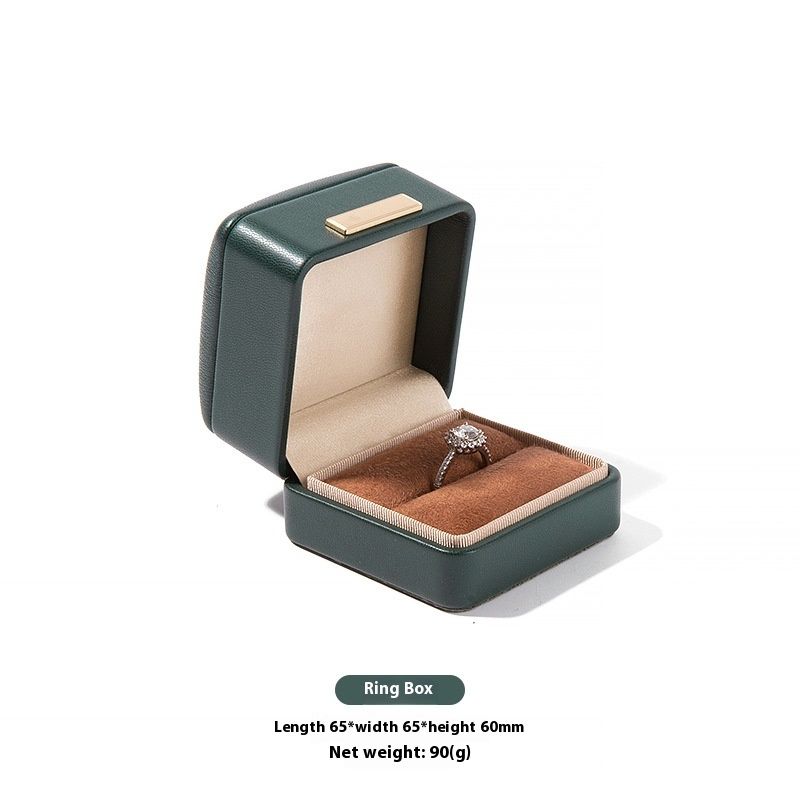 High-grade PU Leather Jewellery Box Rounded Corner Ring Box Dark green ring box PU Square Buckle