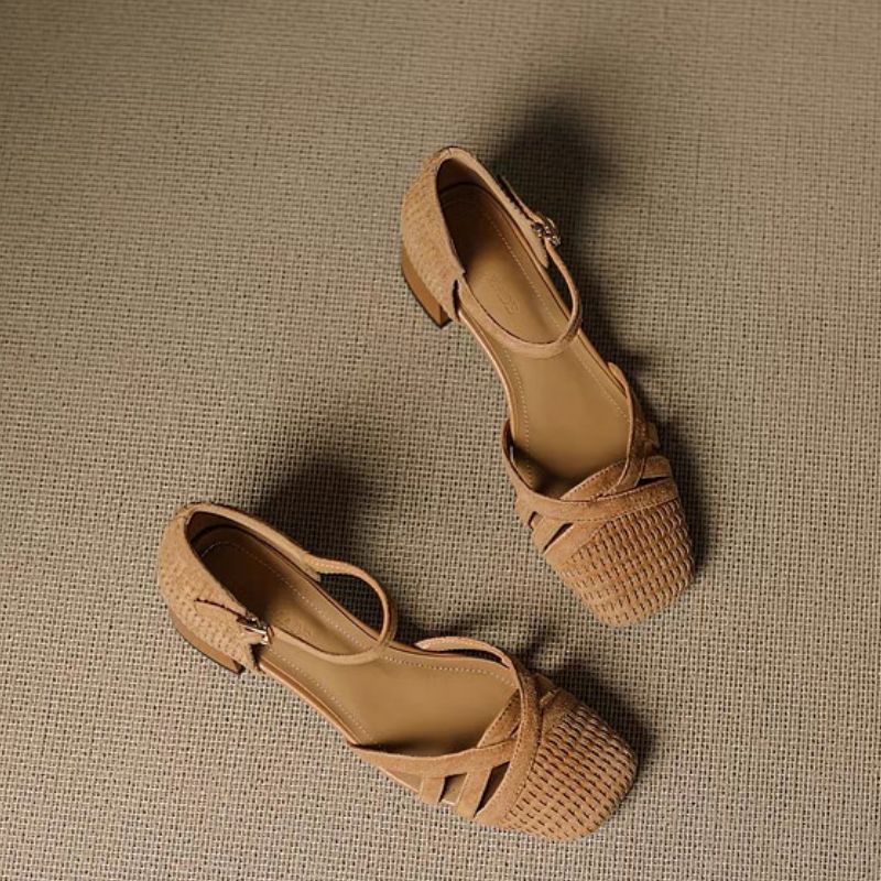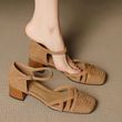 High Heels Women Sandals Designer Weave Heeled Shoes Summer Fashion Buckle Pumps 2025 New Elegant Shallow Shoes