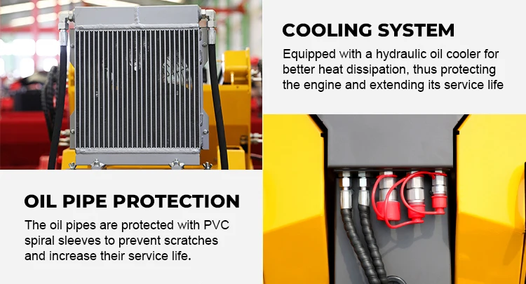 Advantages of Backhoe loader: support multi-function operation, fast attachment of accessories, excavation, crushing, trench cleaning, drilling and bulldozing;