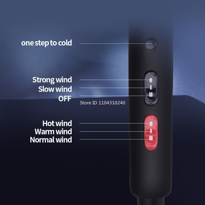 2500W high-power with blue light, cold and hot air switching, multi range regulation of negative ions