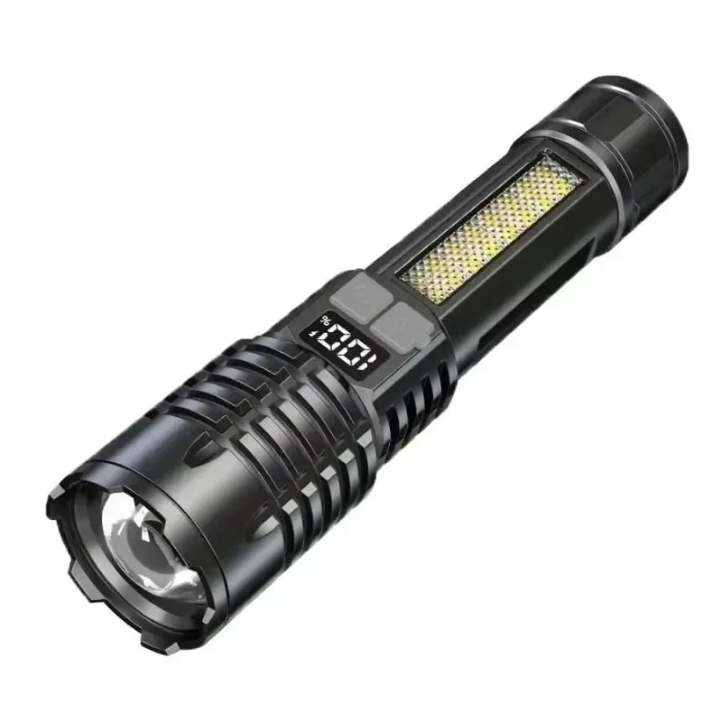 High Power LED Flashlight Portable Zoom Torch Type-C Rechargeable Waterproof Light with COB Side Lamp for Outdoor Camping Hiking