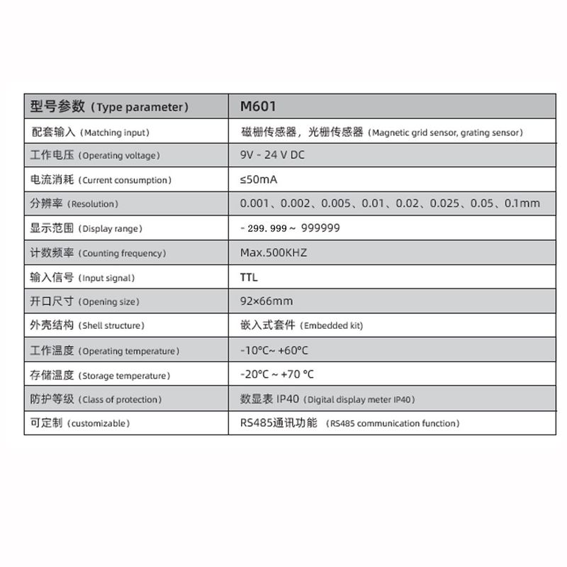 Resolution (mm) 0.001, 0.002, 0.005, 0.01, 0.02, 0.025, 0.05, 0.1 Dimensions 96 * 72 * 65mm