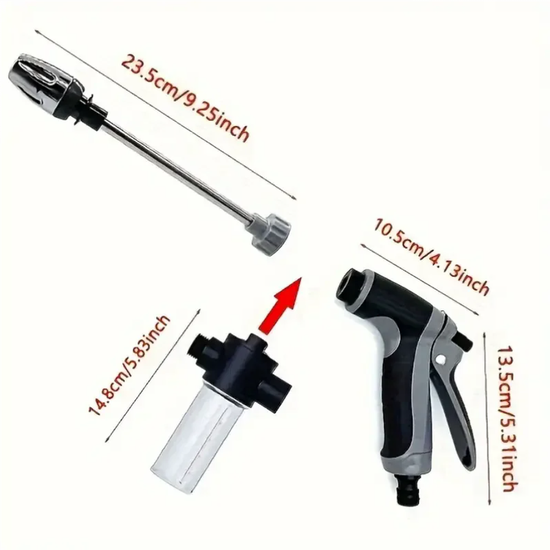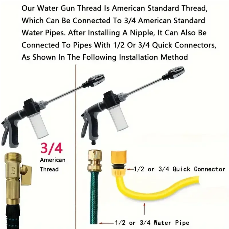 High Pressure Car Wash Foam Gun With Long Handle - Adjustable Nozzle For Cleaning, Watering And inflating Tires - includes Foam Cannon And Pressure Spray Bottle