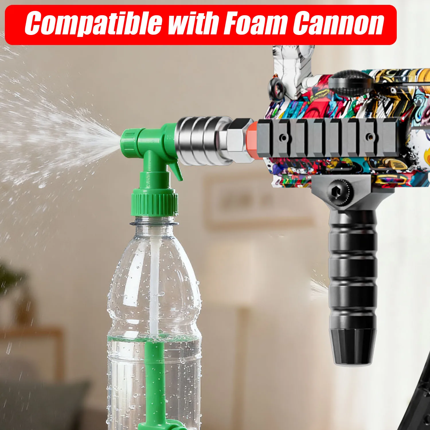 Standardized quick-connect plug lets you link to foam cannons or garden hoses in 10 seconds (no tools needed). Just plug in for a tight fit; detach via a simple buckle. Ditch tedious twisting of traditional threaded ports—perfect for beginners.