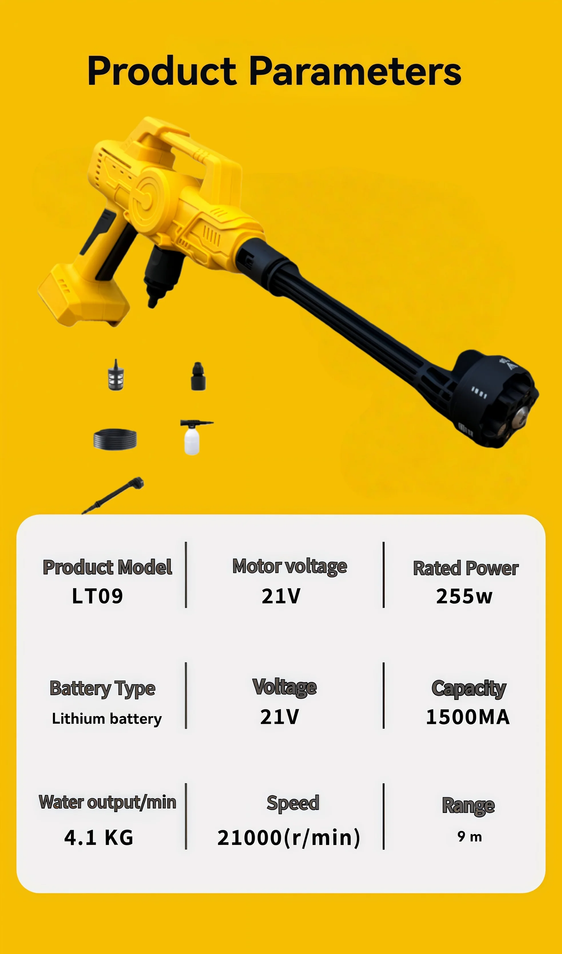 High pressure washer portable pressure washer pressure washer gun for DeWalt 20V battery garden car wash sprayer High