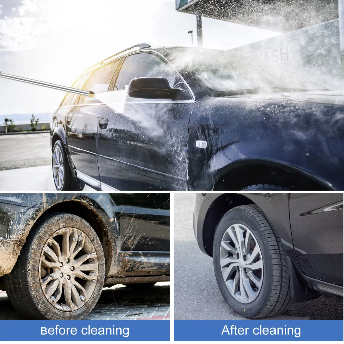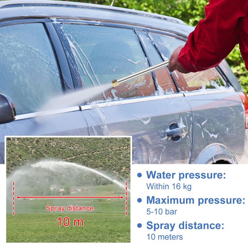 [Note] This is a normal electric washing machine nozzle. The pressure depends largely on the water pressure in the water system. The magic electric car wash wand can only raise the pressure to a limited extent, so if you want extra water pressure, use it with a jet car washer or electric car wash with a pressure pump.