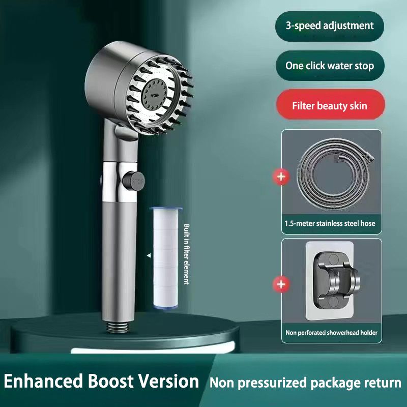 High Pressurized Filter Shower Head 3-mode Adjustable Spray with Massage Brush Rain Shower Set Changeable Filter Element