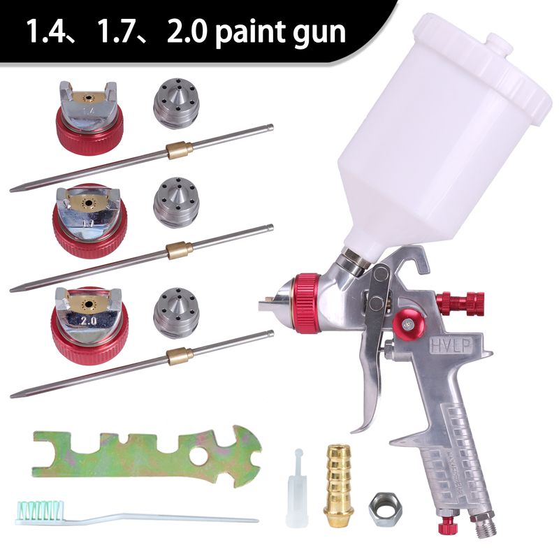 High Quality 1.4/1.7/2.0mm Nozzle Professional HVLP Spray Gun 600ML Gravity Feed Airbrush Kit For Car Furniture Painting
