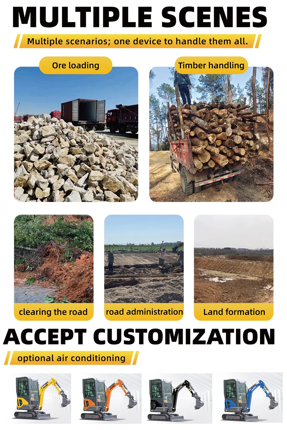 🔗 European standard quick couplers: The loaders in the pictures are equipped with heavy-duty European hydraulic quick couplers, allowing attachments to be swapped in under 10 seconds from the upgraded cabin.