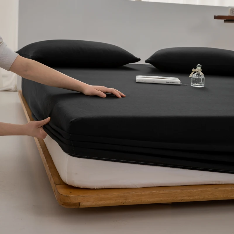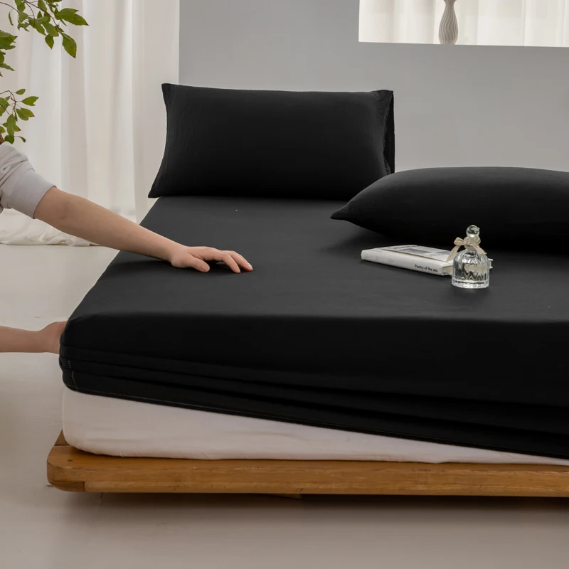 High Quality 100% Cotton Fitted Sheet Soft Breathable Mattress Cover with Elastic Bands Single/Double/King/Queen Size Bed Sheet