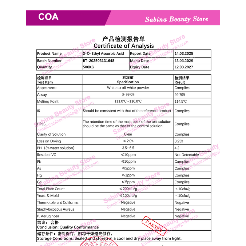 Product name: 3-O-Ethyl Ascorbic Acid Powder