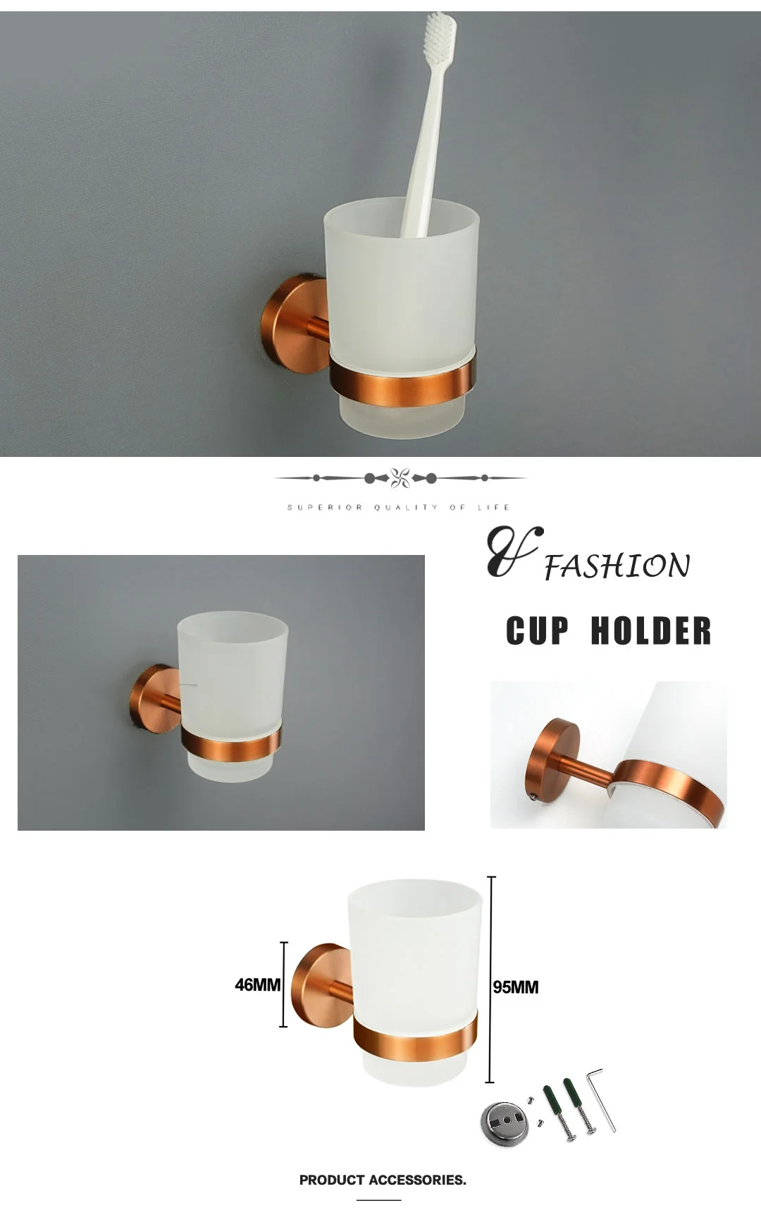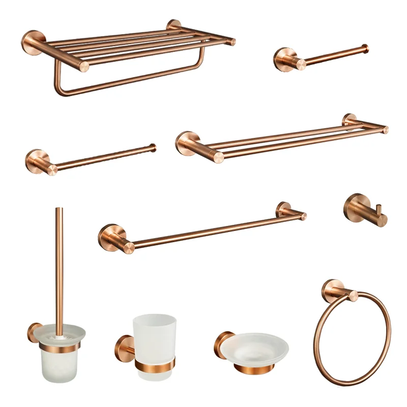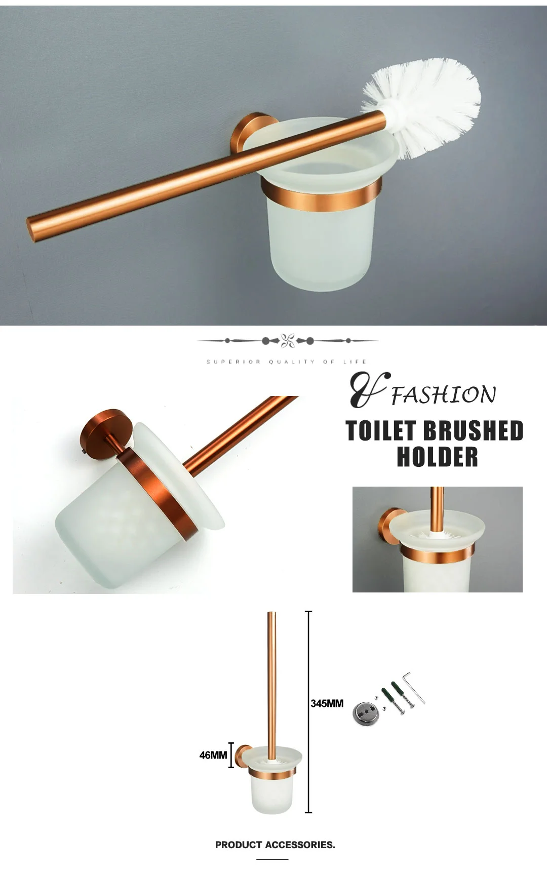 High Quality Brushed Rose Gold Bathroom Pendant Towel Holder Towel pole Tissue Hook Toilet Brush Bathrobe Hook Hardware