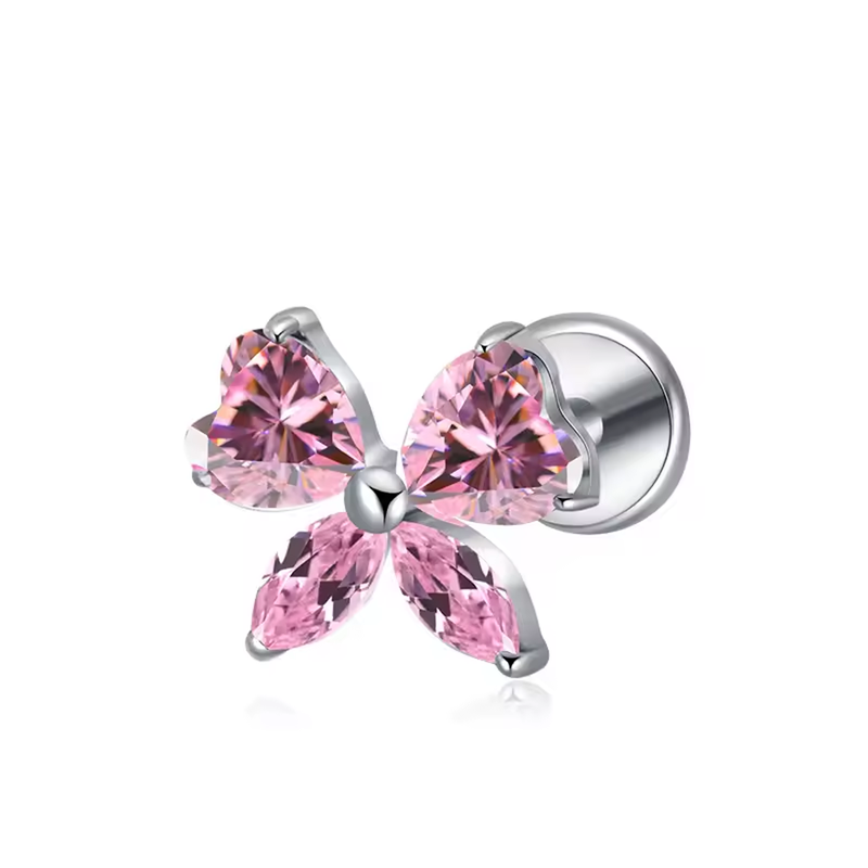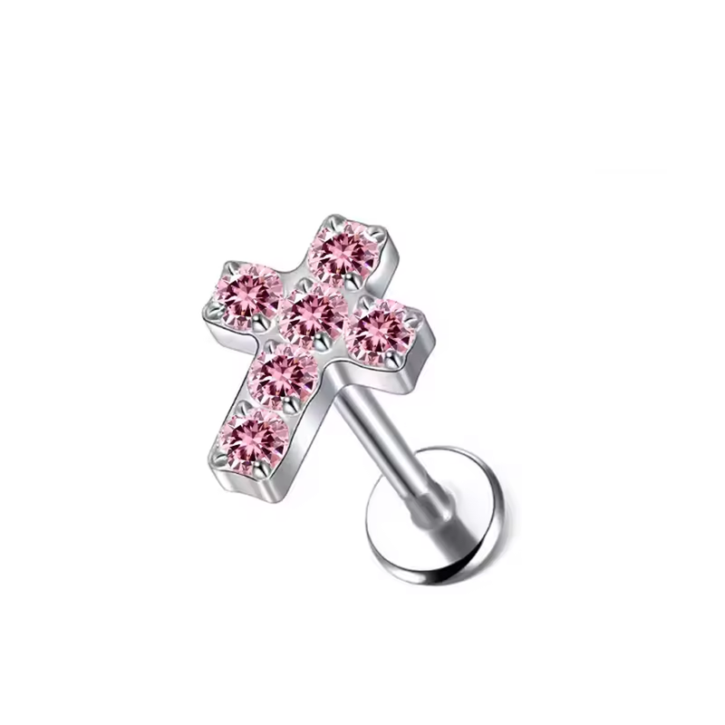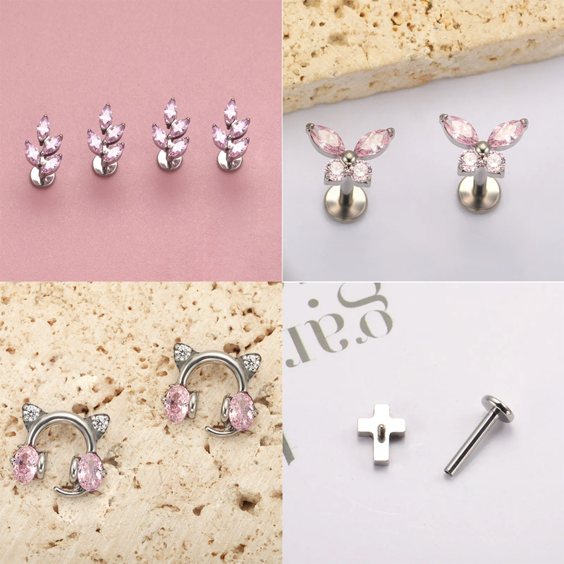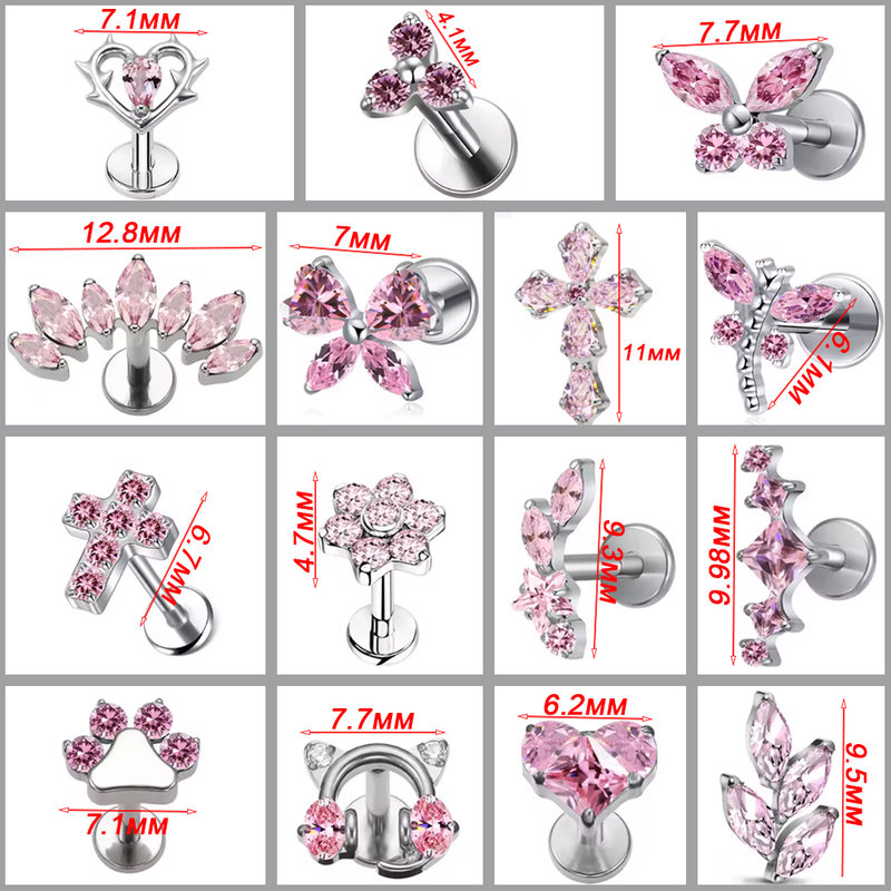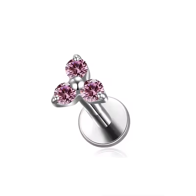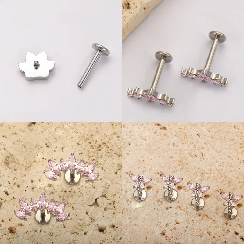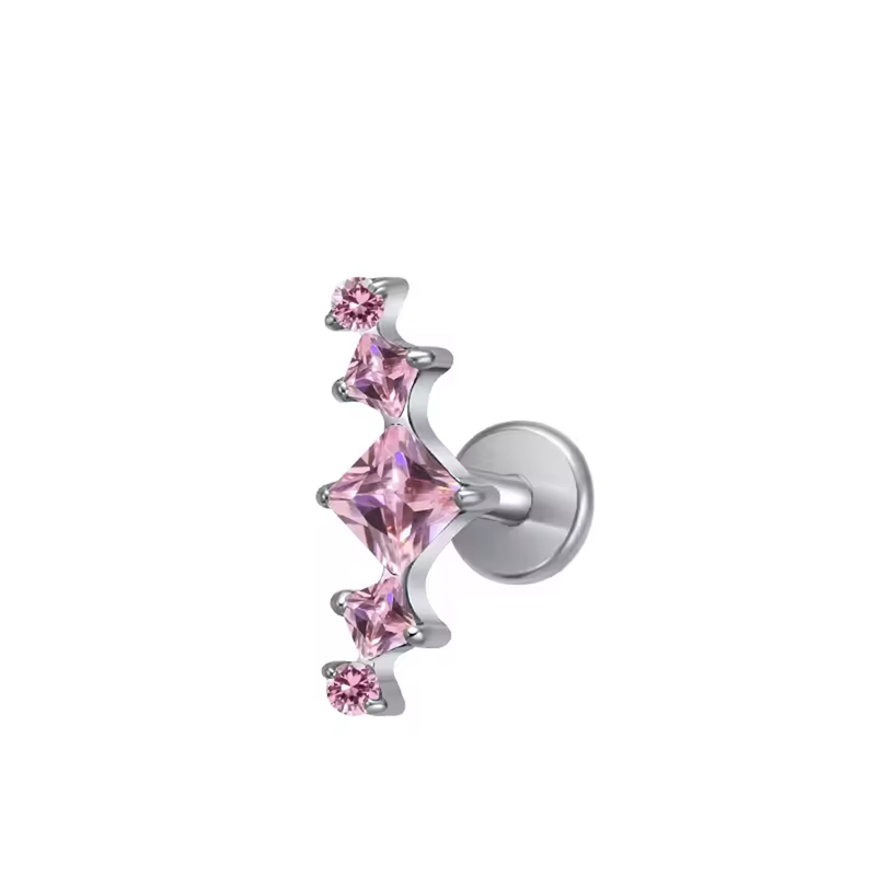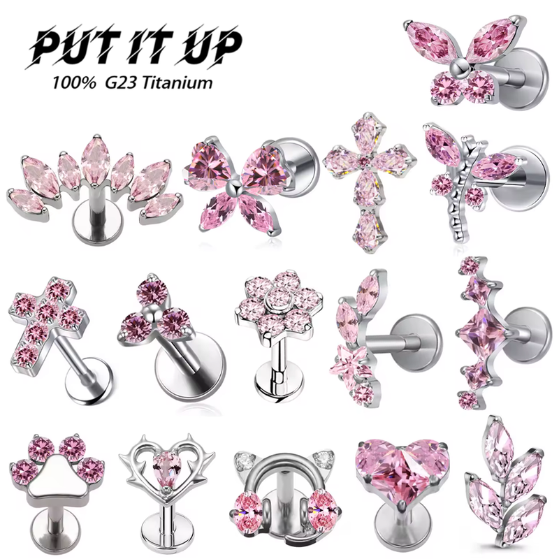 High-Quality F136 Titanium Alloy Pink Zirconia Stud Earring Set Fashionable Cartilage and Lip Piercing Jewelry for Men and Women