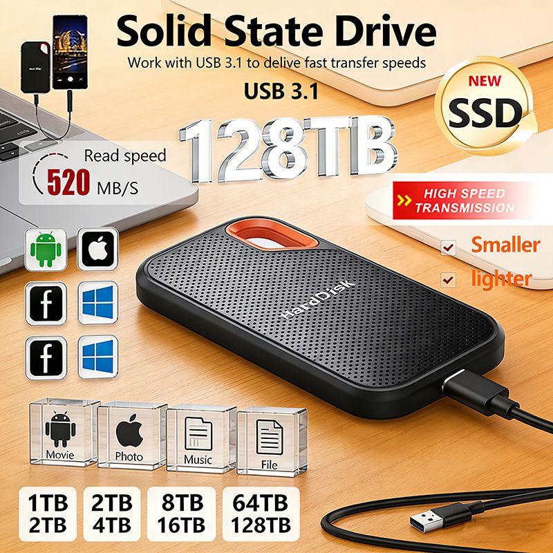 High-quality Hard Disk 1TB Practical External Hard Drive Portable SSD 128TB High Capacity Solid Disk for Laptop/PC/Phone/Mac