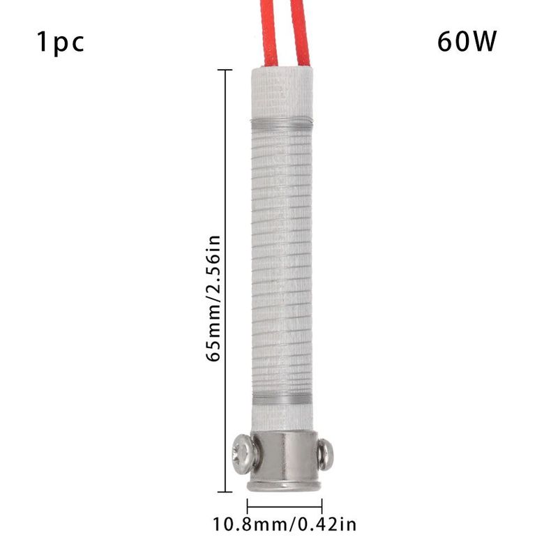 60W: Outer diameter:10.8mm.Inner Diameter:6.2mm,Length 195mm,Heating body length: 65mm, sleeve length 80mm, lead length 50mm