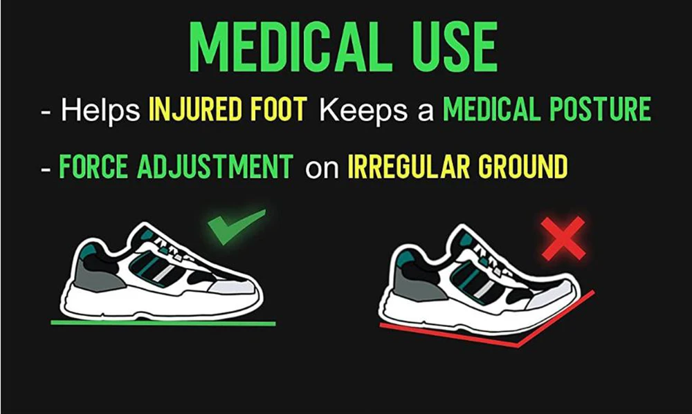 Medic Help: for minor sole discomfort caused by exercise or daily injury, uses the product to support the sole, so the pressure only on the carbon fiber insole instead of the tendons and muscles of your forefoot. It also helps to reduce the pressure caused by an irregular hard object.