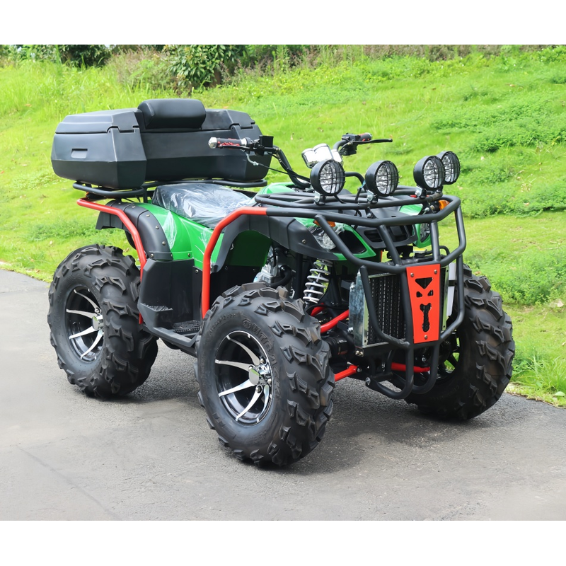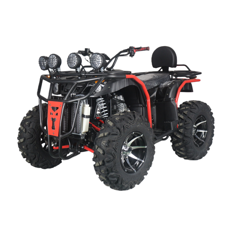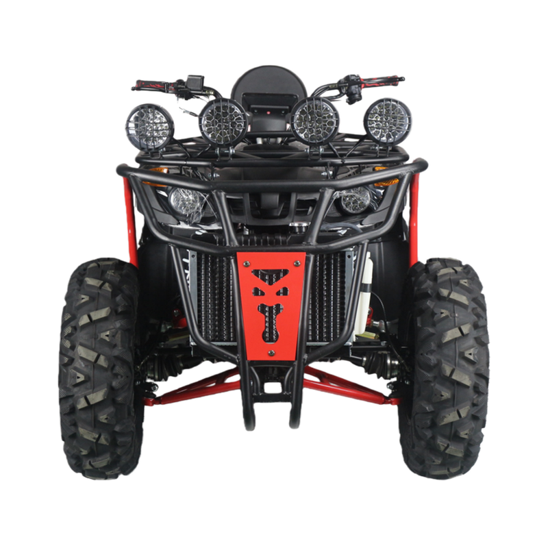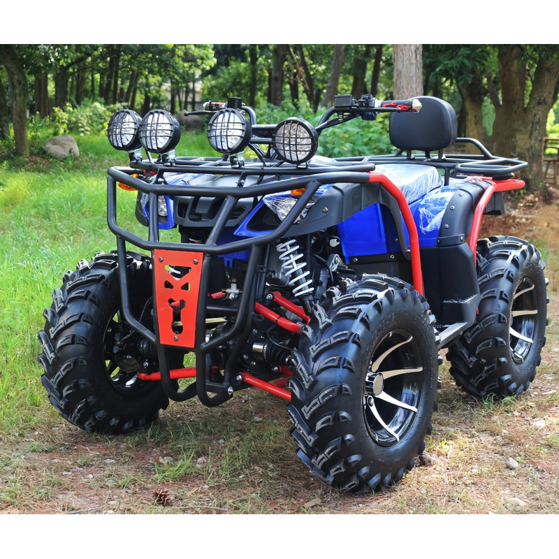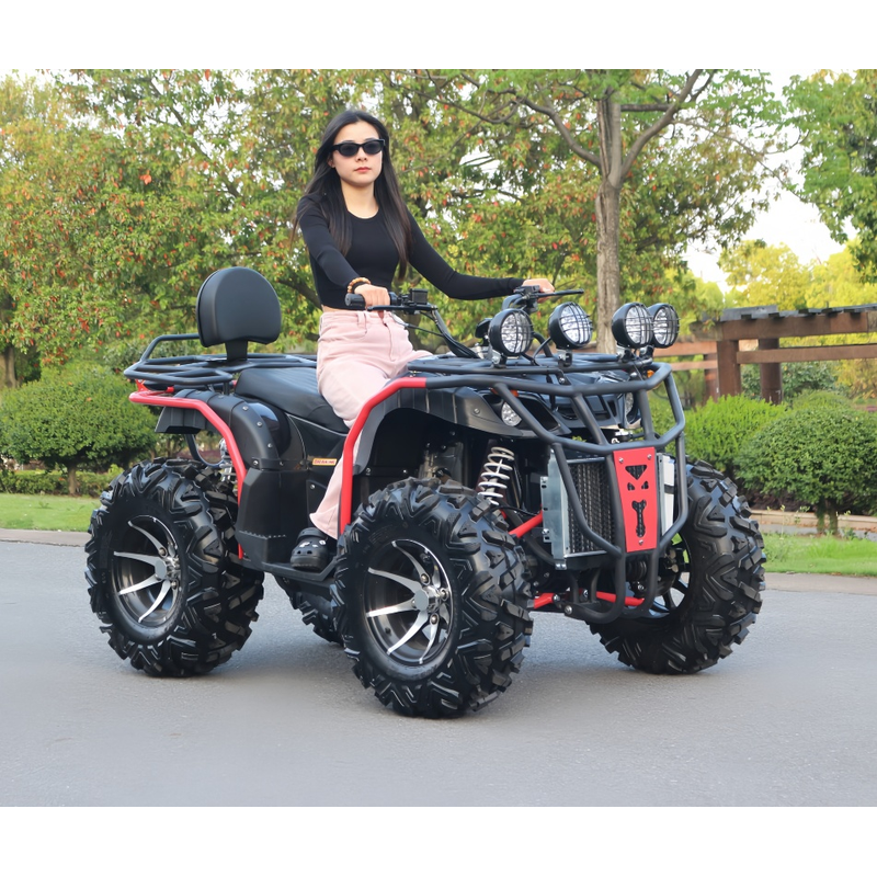 Chixiang 250 water-cooled engine 4 forward gears, 1 neutral gear, 1 reverse gear All-wheel drive can be switched between 4-wheel drive, 2-wheel drive and normal drive Off-road reinforced and thickened frame 5-liter iron fuel tank 12-inch aluminum wheel with vacuum tire Install reinforcing anti-collision shelves at both the front and the back Three meters + LED four-network lights Rolling protection frame Stretched out backrest Flame guard cover