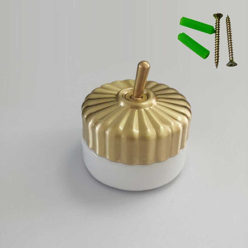 High Quality Retro Ceramic Round Toggle Switch 1 Way 2Way Control Wall Light Switch Brass Lever Rocker Retro ON-OFF Wall Switch