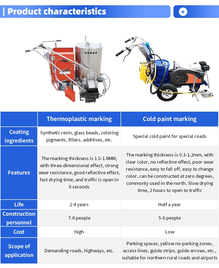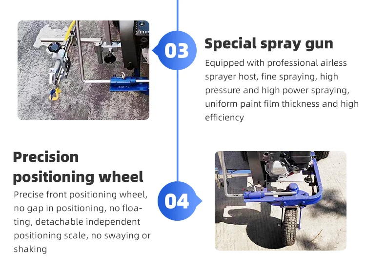 1. Strong Adaptability: The road line marker machine works with thermoplastic paint, cold paint, two-component materials and other marking substances, fitting roads, parking lots, airports and other scenarios.