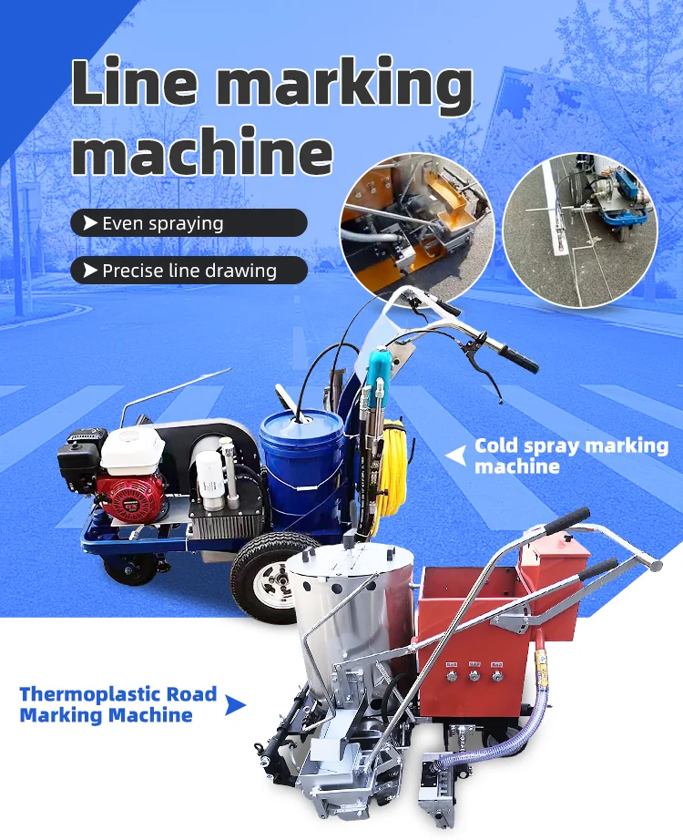 The road line marker machine (also known as road line marking machine) is professional equipment used in municipal engineering, transportation construction, and property maintenance. Specifically designed for drawing traffic markings on roads, parking lots, airport runways, and other similar sites, this versatile road marking line machine can accurately spray solid lines, dashed lines, zebra crossings, directional arrows, and other essential traffic marks.