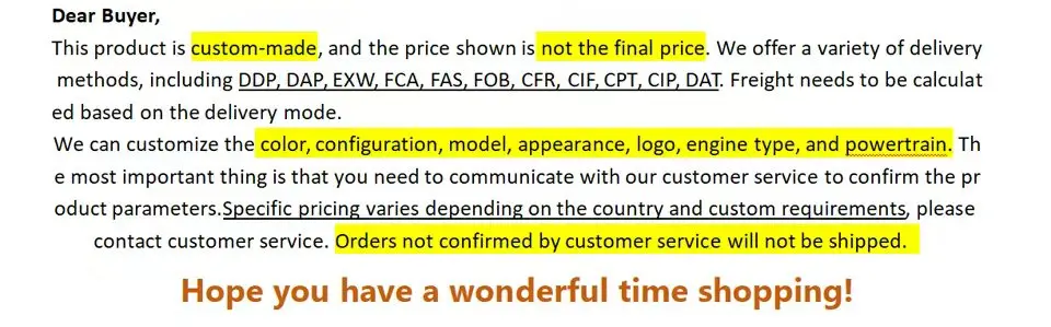 The price of some models is FOB price, please consult customer servic.