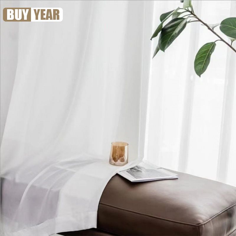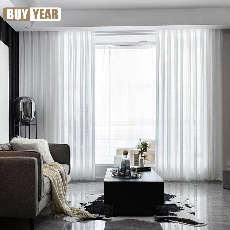 High Quality Solid White Tulle Curtains for Living Room Cream Decoration Beige Window Sheer Voile Modern Bedroom Chiffon Decor