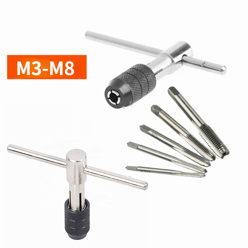 High Quality T-type Wrench Drill Set Hand Tapping Tools Machine Screw Thread Tap Twist Bit M3/M4/M5/M6/M8 Tap Set DIY Tool