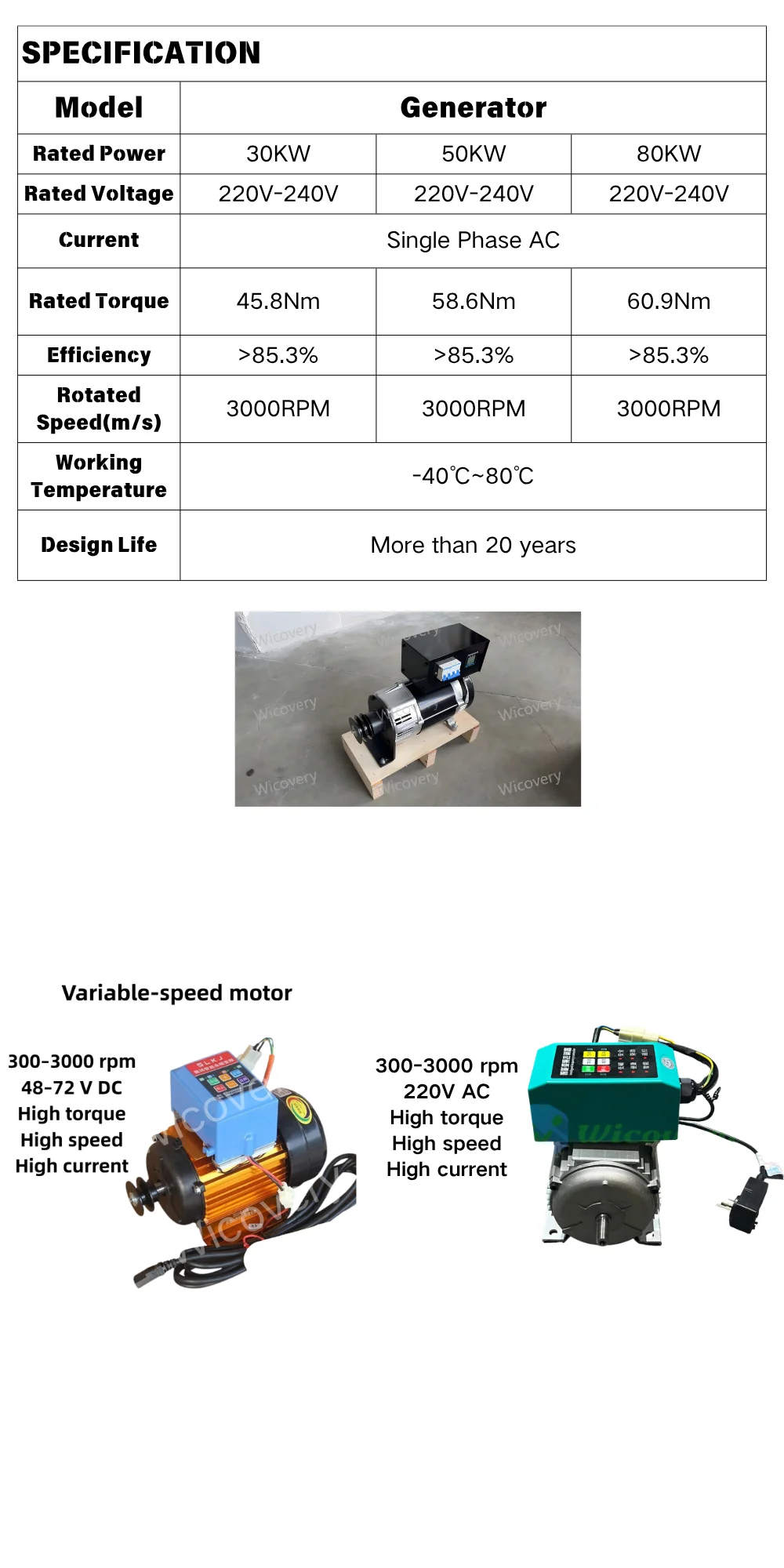 Generator:220V,3000rpm,Single Phase