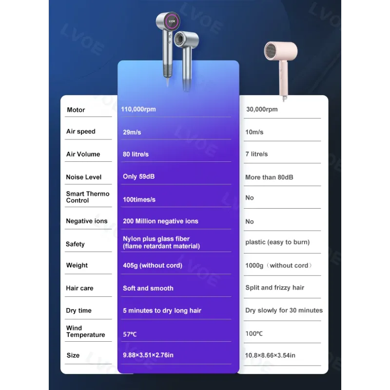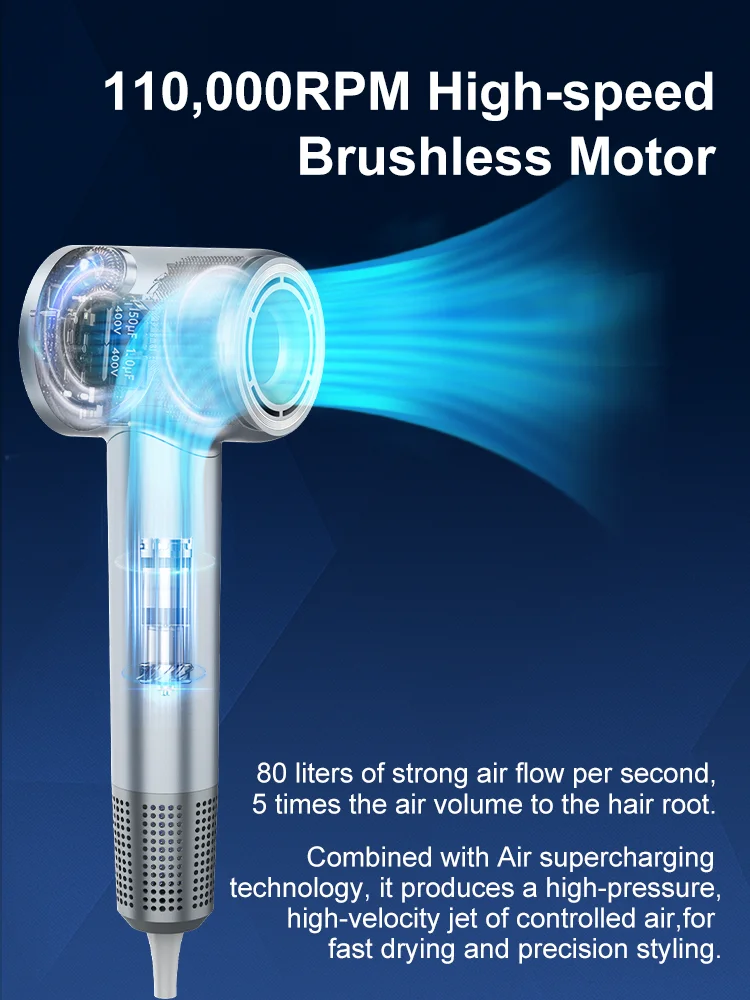 1, 110,000rpm High-speed Brushless Motor, Fast Drying.