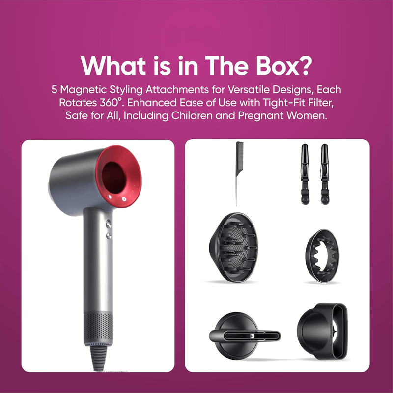 High Speed Bladeless Hair Dryer Negative Ion Fast Drying Home Powerful Hair Dryer Styling Tools 1600W High Speed Hair Dryer