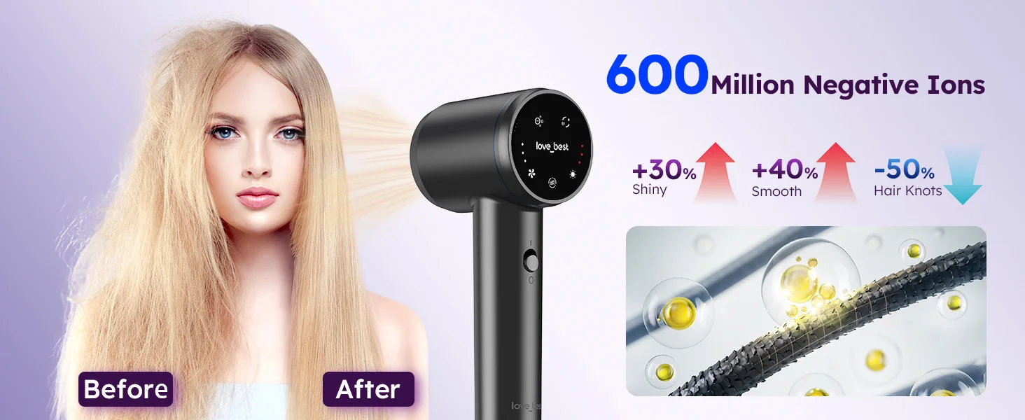【600 Million Negative Ions - Smooth, Shiny, Frizz-Free】