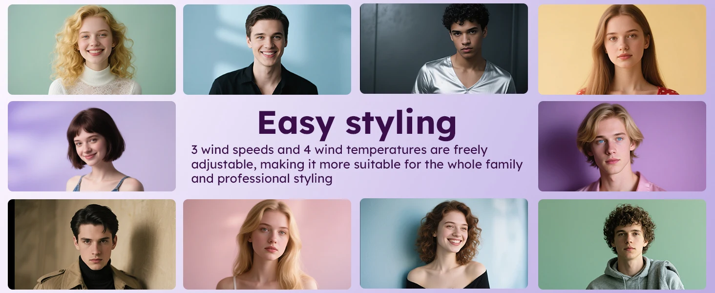 【Soft Wind Mode for Kids, Fine Hair & Pets】