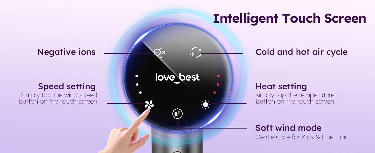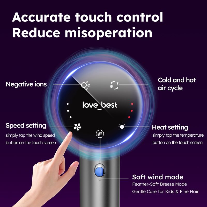 Experience effortless styling with our LED touchscreen hair dryer. Adjust temperature and airflow levels in real-time with just a tap - no knobs, no guesswork. Sleek, minimalist design and smart display elevate your daily routine with precision and elegance