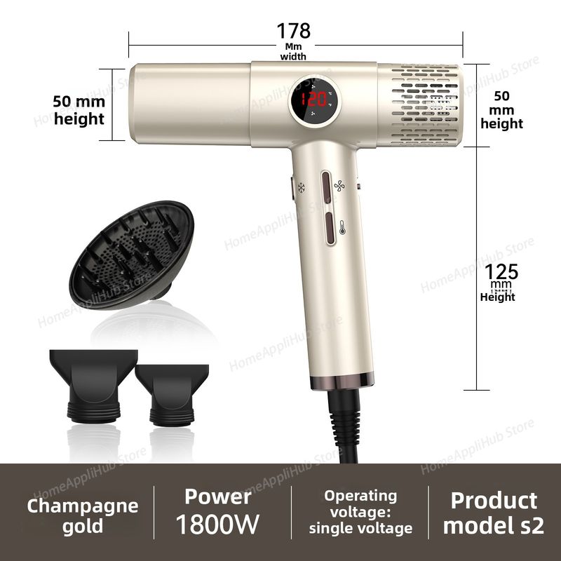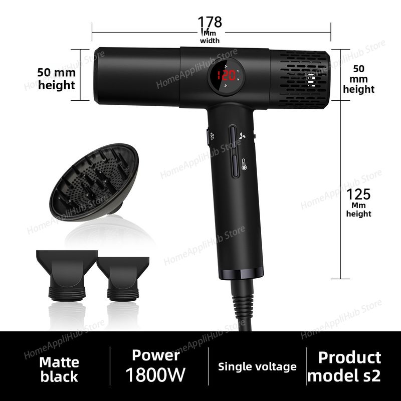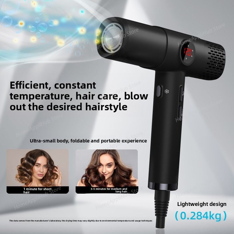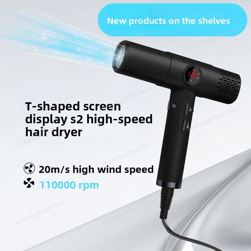 High-speed hair dryer with LCD display, 110000RPM, negative ion, T-shaped, lightweight, brushless motor, quick-drying, low noise