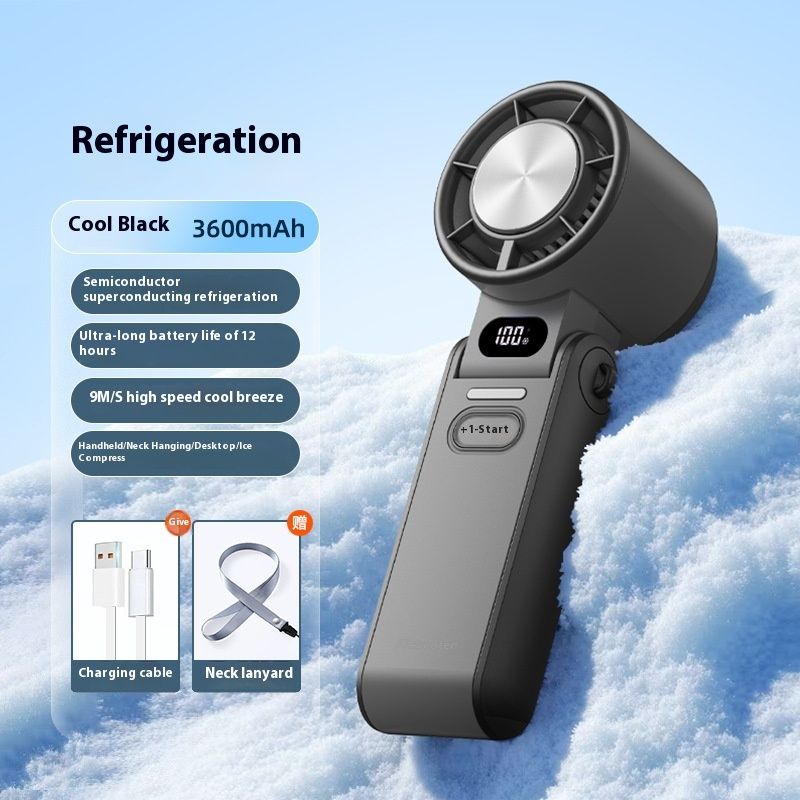 High-Speed Refrigeration Ice Compress Small Handheld Fan Outdoor Portable Foldable F53K Black Ice Compress