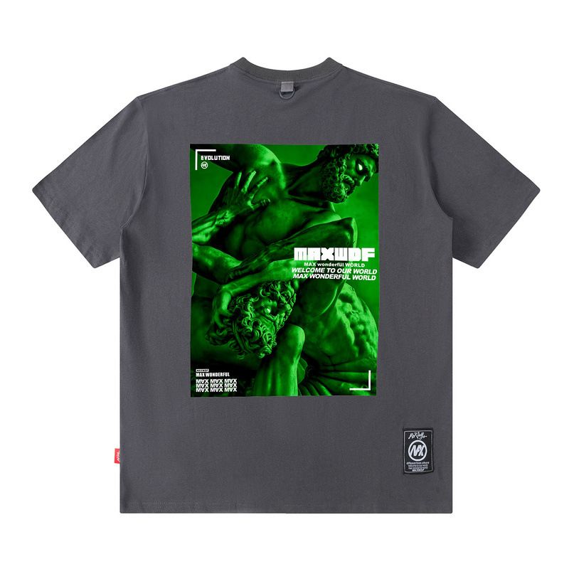 High Street Fashion T-shirt Short Sleeve Men Grey c 2XL