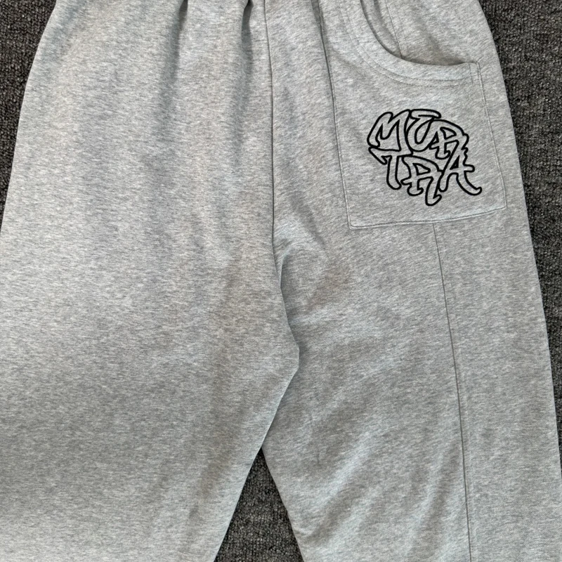 High Street Men's Clothing Mertra Casual Pants Embroidered Pattern Multi-pocket Autumn Winter Grey Fleece Sweatpants