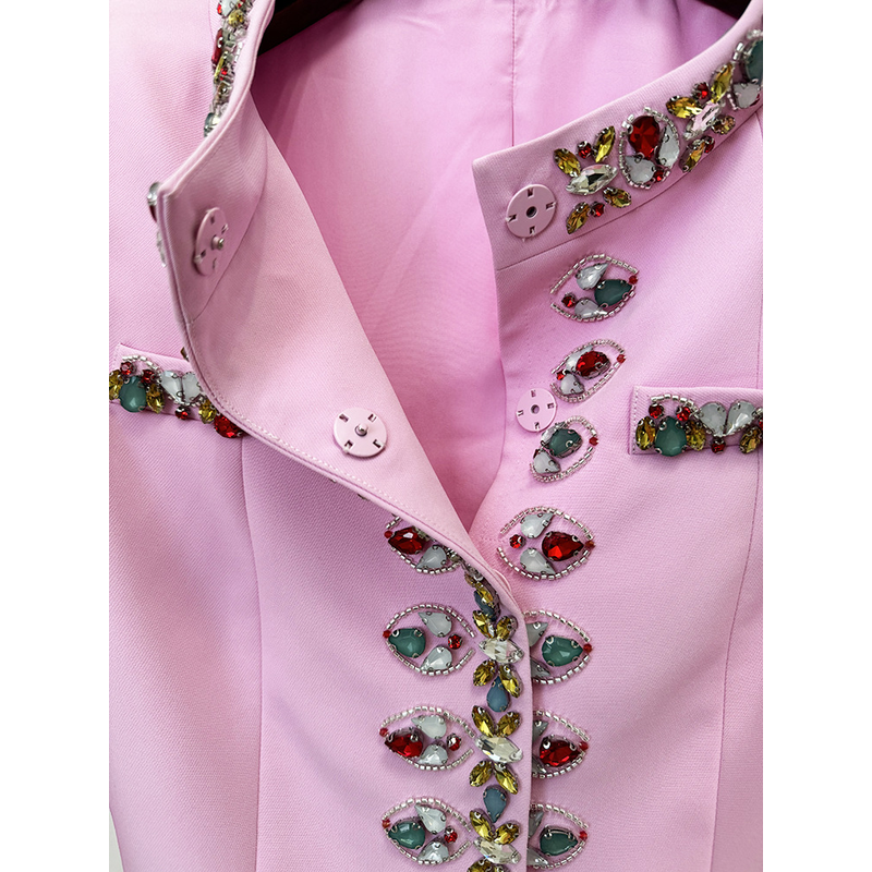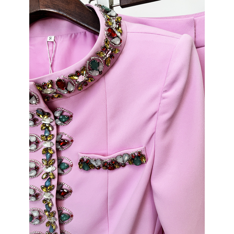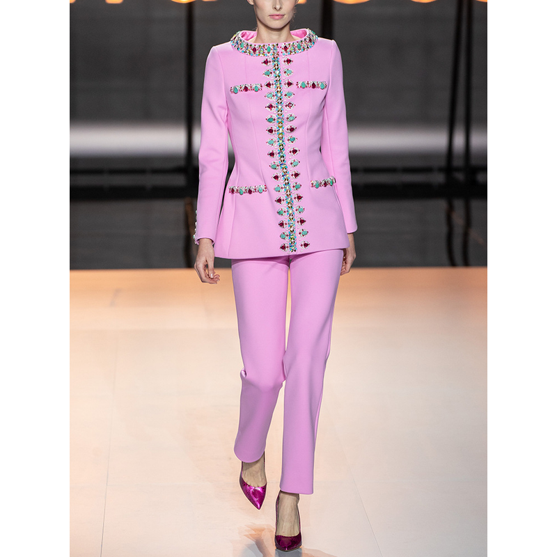 HIGH STREET Newest 2026 Designer Suit Set Women's Diamonds Beaded Jacket Pencil Pants Set 2pcs