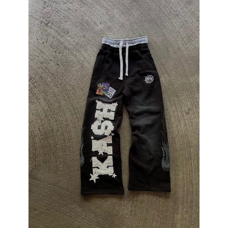 High Street Trendy Pants High Street Ins Trendy Brand Men's and Women's Loose Straight Tube Embroidered Printed Casual Pants